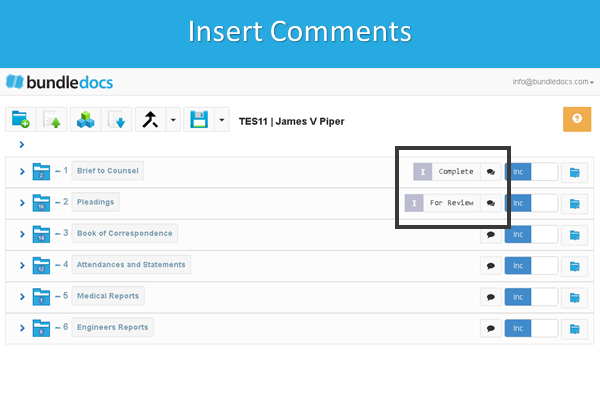 Preview Any Bundle: With Bundledocs there is no need to wait until the last minute to create your bundle. Effortlessly upload files as you receive them and build your bundle as you go. Easily preview any generated bundle and download once you are are happy. Need to make a change? No problem. Bundledocs provides you with the flexibility to make as many changes/amendments to your bundle as needed.